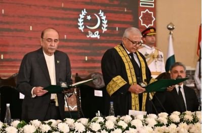 چیف جسٹس امین الدین خان نے ایوان صدر میں صدر مملکت آصف علی زرداری سے حلف لیا۔ تقریب میں وزیراعظم شہباز شریف، فیلڈ مارشل عاصم منیر، چیئرمین جوائنٹ چیف آف اسٹاف کمیٹی ساحر شمشاد، چیف جسٹس پاکستان یحییٰ آفریدی، وفاقی وزیر قانون اعظم نذیر تارڑ، اٹارنی جنرل منصور عثمان اعوان اور دیگر عدالتی و سرکاری شخصیات موجود تھیں۔