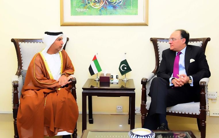 متحدہ عرب امارات کے نئے سفیر ح.ع. سالم م. سالم البواب الزعابی نے آج وفاقی وزیر برائے خزانہ و محصولات سینیٹر محمد اورنگزیب سے ملاقات کی۔ ملاقات میں سفیر الزعابی نے پاکستان میں اپنی تعیناتی کے دوران گرمجوش استقبال پر شکریہ ادا کیا اور دونوں ممالک کے عوام کے تاریخی تعلقات اور پاکستانی پروفیشنلز کی یو اے ای میں خدمات کو سراہا۔ انہوں نے کہا کہ ان کی ترجیح دونوں ممالک کے تعلقات کو اسٹریٹجک، معاشی اور ثقافتی سطح پر مزید مضبوط کرنا ہوگی۔