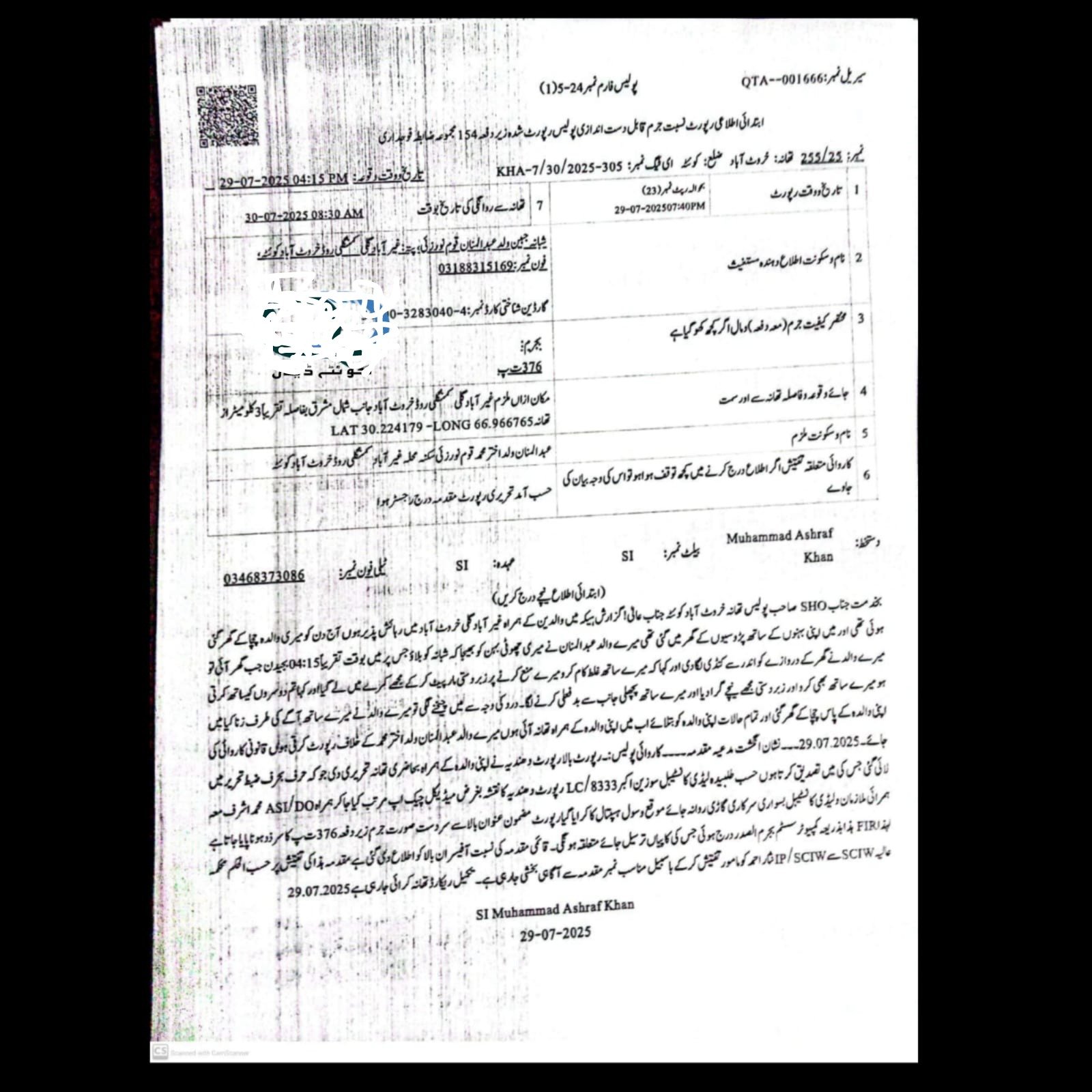 پولیس کے مطابق، متاثرہ لڑکی خود تھانے پہنچی اور ابتدائی بیان میں واقعے کی تفصیلات فراہم کیں۔ پولیس نے فوری کارروائی کرتے ہوئے نامزد ملزم کو حراست میں لے لیا ہے۔